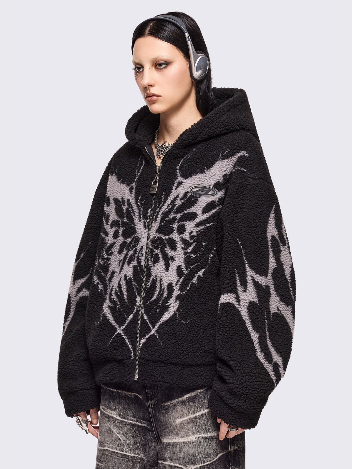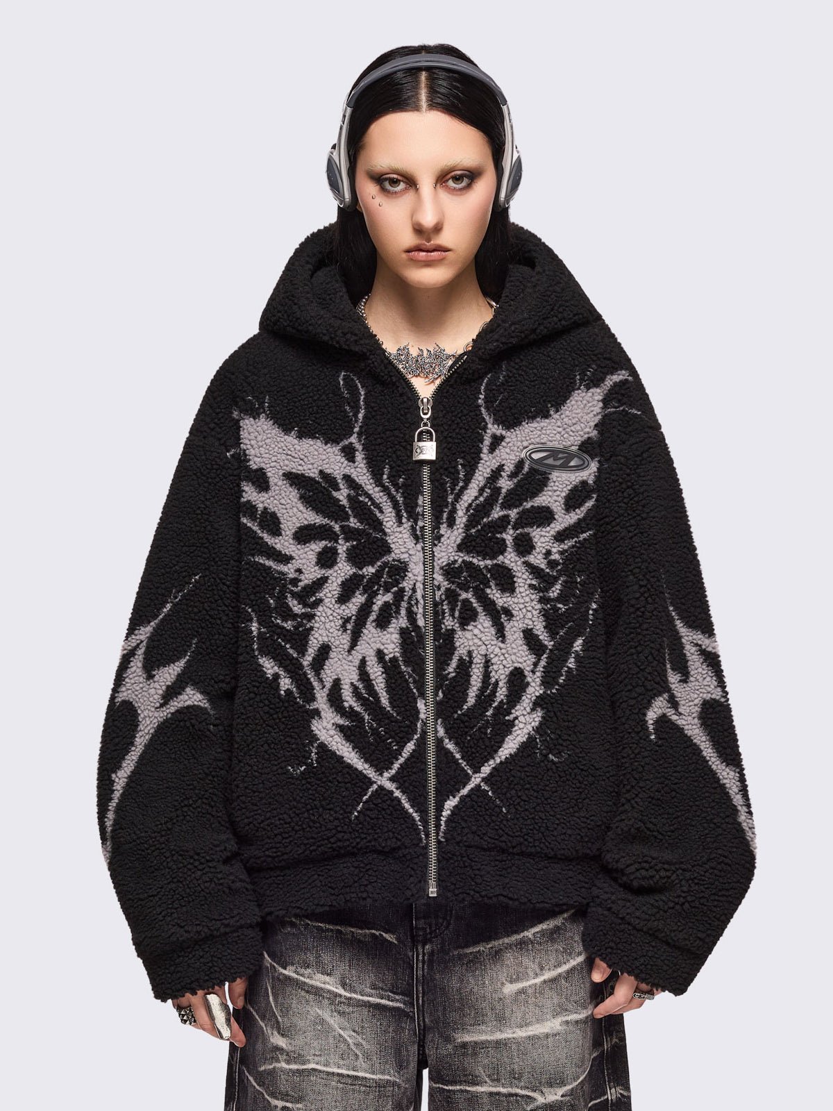 - Black fleece hoodie jacket