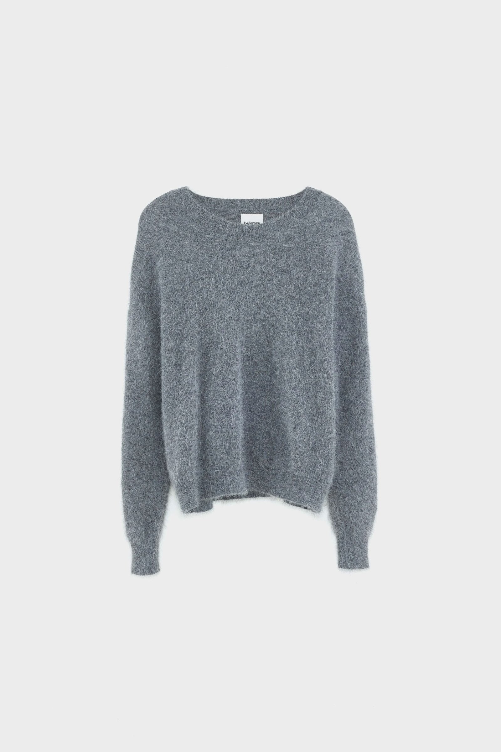 Oversized sweater with crewneck and long sleeves. crafted from a soft angora blend in mid-grey.