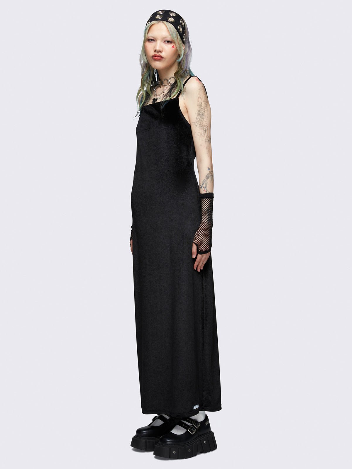 - Black cami maxi velvet dress