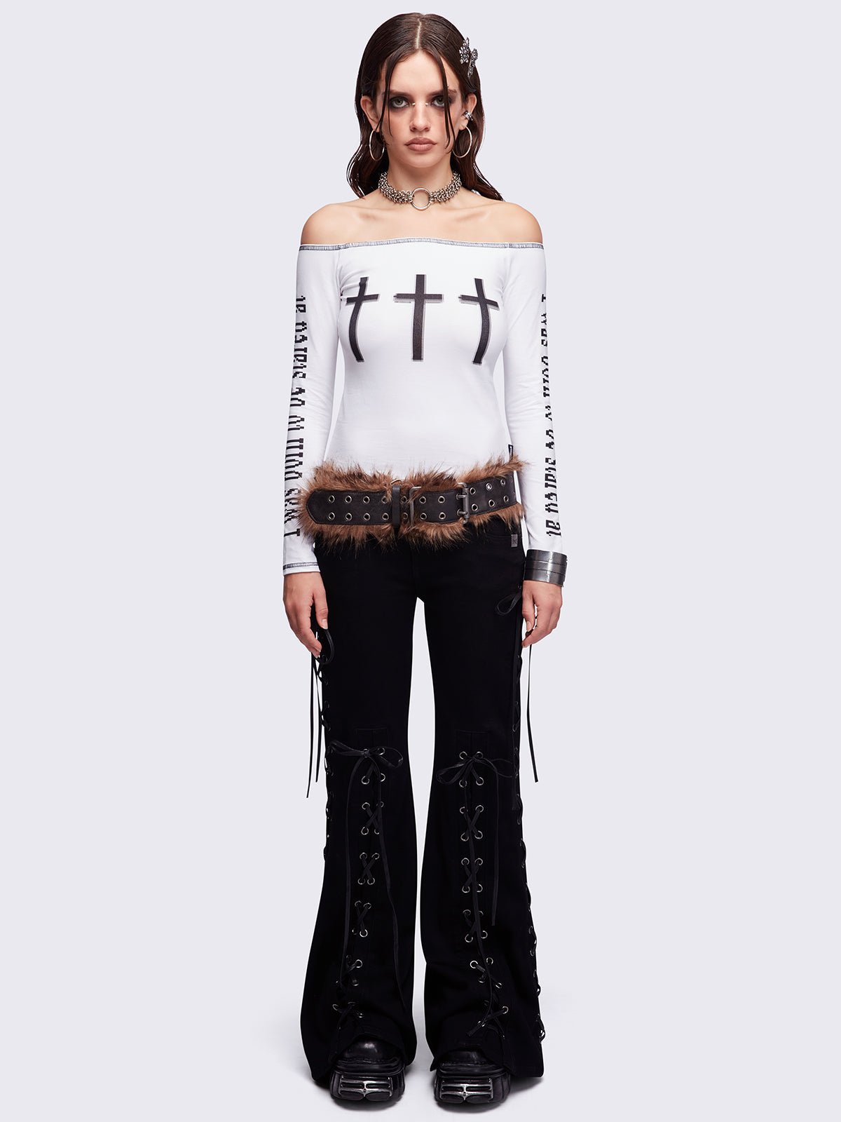 • White off-shoulder top