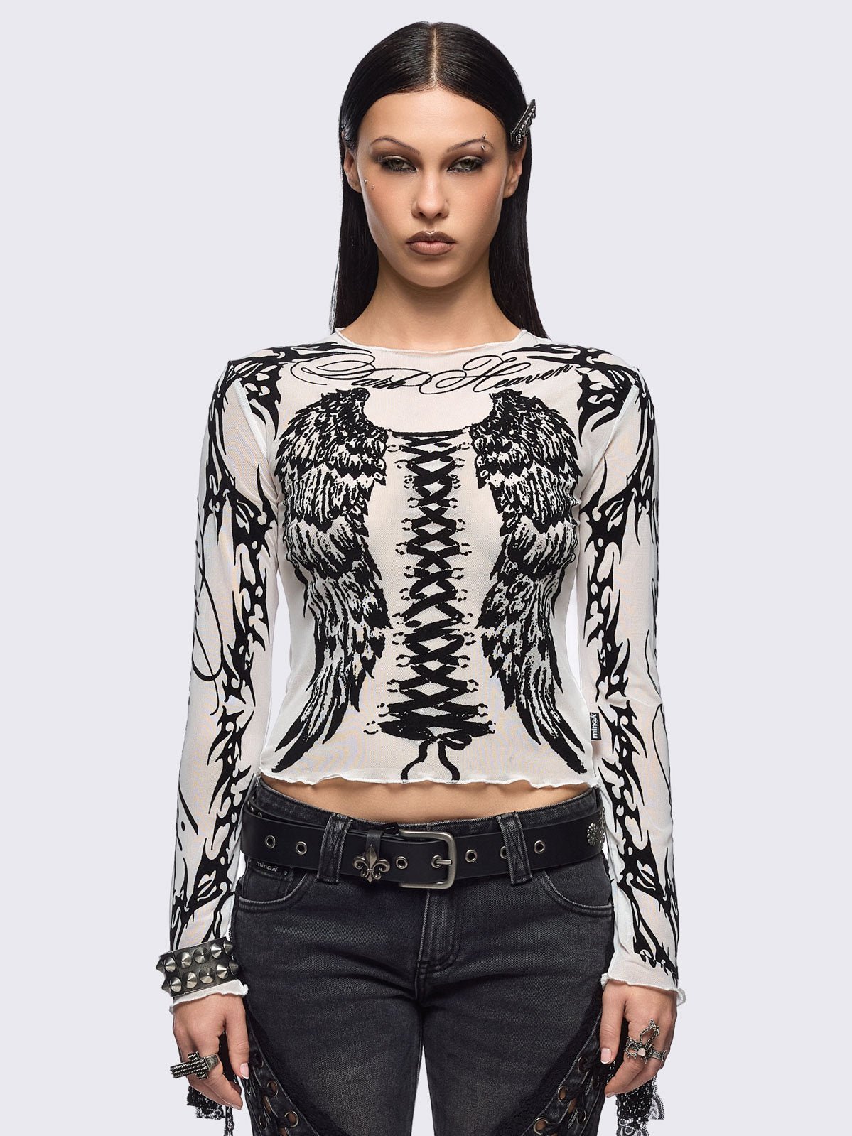 - Black winged corset and sigilism graphic print